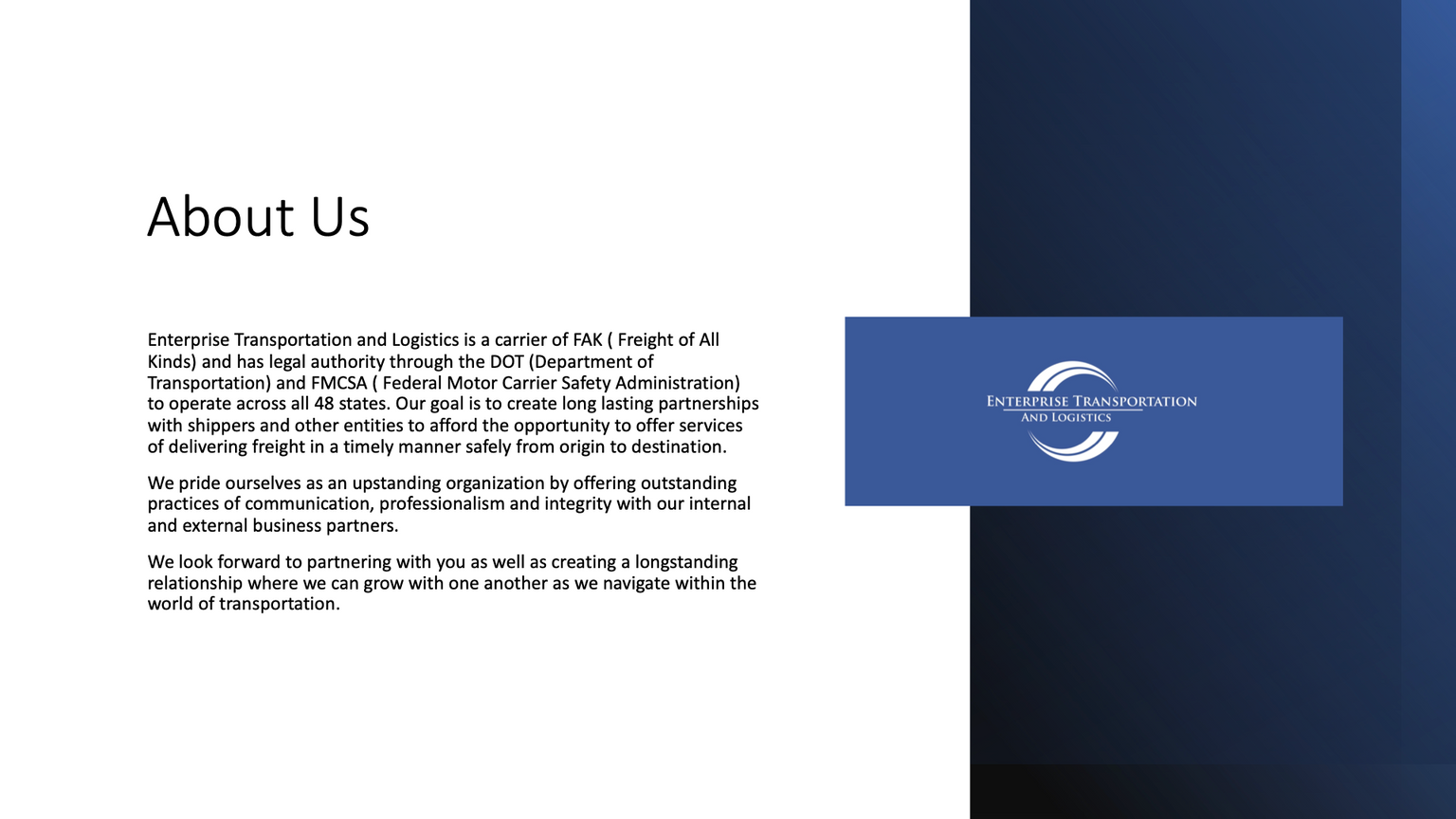 Allow Enterprise Trans to assist you with offering the best solution to your supply chain. Our vast network of operators will give our customer the ability to remove bottlenecks within your operations.
